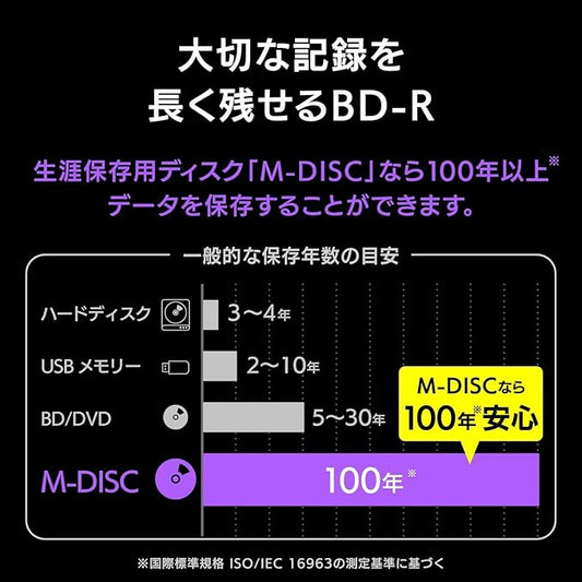 Verbatim DBR50RMDP5V2 M-DISC BD-R DL Long-term Storage, Single Recording, 1-6x Speed, 50 GB, 5 Sheets, White Label, Blu-ray Disc