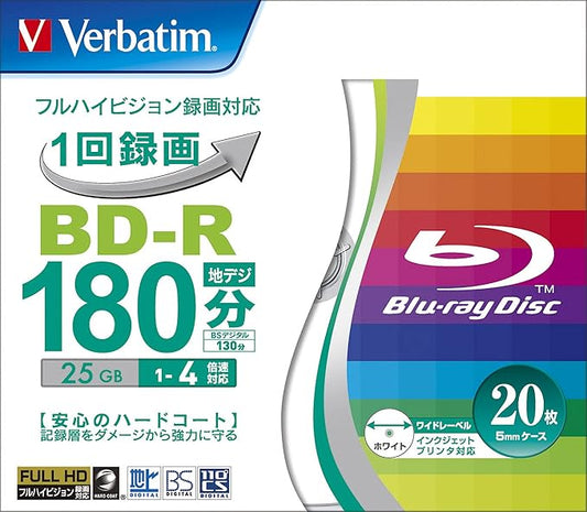 Verbatim Japan 20 BD-R 25GB 1-time recording Blu-ray discs, white printable, single-sided, single layer, 1-4x speed VBR130YP20V1