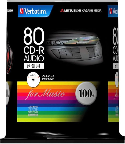 Verbatim MUR80FP100SV1 for Music, CD-R, 80 Minutes, 100 Sheets, White Printerable, 48x