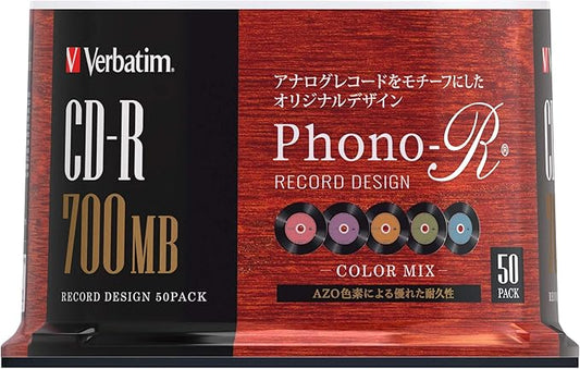 Verbatim SR80FHX50SV7 700MB Record Design for Data, 50 Sheets Color MIX Phono-R