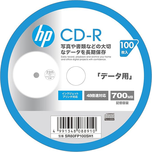 Verbatim Hewlett Packard SR80FP100SH1 Single Recording CD-R 700MB 100 Sheets Inkjet Printer Compatible, White, 48X Speed