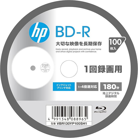 Verbatim (HP) VBE130NP50SH1 Repeated Recording Blu-ray Disc BD-RE, 25 GB, Compatible with 50 Inkjet Printers, White, Single Side, 1-2x