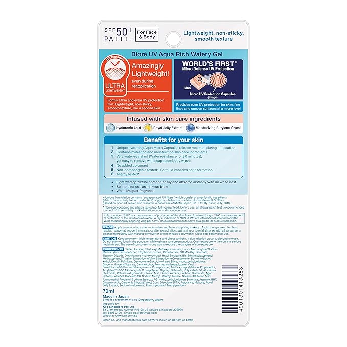 Biore UV Aqua Rich Watery Gel For All Skin Type / Spf50+ Pa++++, 70 Ml