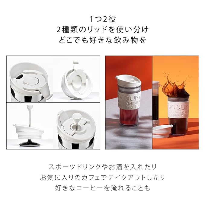 Bodum K11102-913 Travel Press Set Coffee Maker with Extra Lid, 12 oz, White