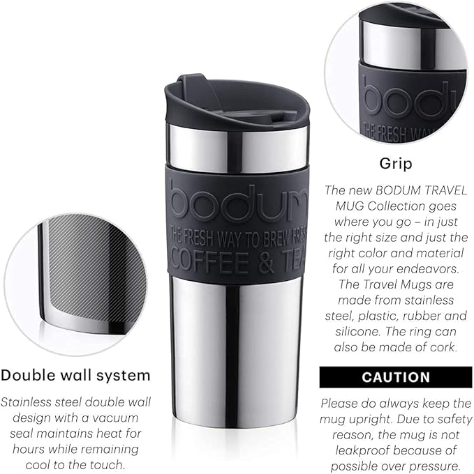 BODUM Tumbler Water Bottle Travel Mug 350ml Black Stainless Steel