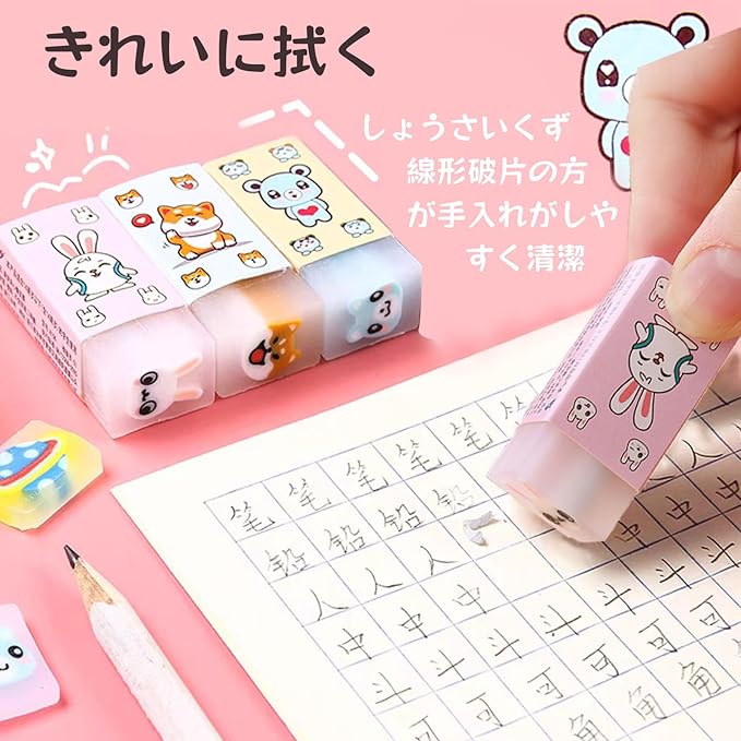 Cute Eraser, Set of 6, Stick Eraser, Eraser Thoroughly Erases.