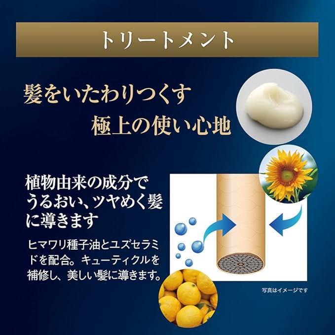 - (Treatment for Japanese natural silky hair) Carefully selected ingredients such as Gagome kombu extract, which has been good for hair since ancient times in Japan. Silk extract helps to concentrate on repairing loose hair and create silky beautiful glossy hair. In addition, the cuticles that can be opened when damaged are coated with a moisturizing ingredient, vegetable oil. Keep your fingers moist and smooth all the way to the end