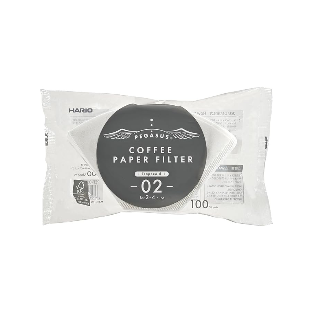 HARIO PEF-02-100W Pegasus Coffee Paper Filter, 02W, White, 2-4 Cups, 100 Pieces, Made in Japan