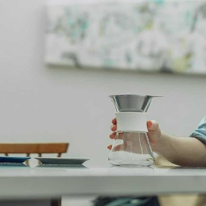 HARIO S-GCM-40-W Glass Coffee Maker, Practical 13.5 fl oz (400 ml), White Dripper Decanter Set with Band