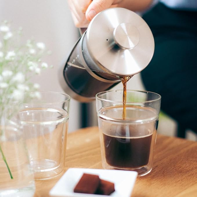HARIO THSV-4-HSV Hairline Silver Pressed Coffee, Heat Resistant Glass, Stainless Steel, Practical Capacity, 20.3 fl oz (600 ml)