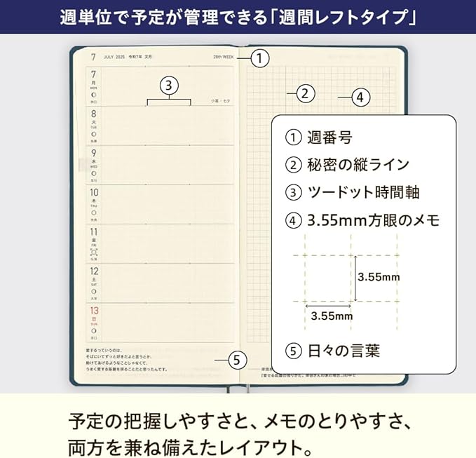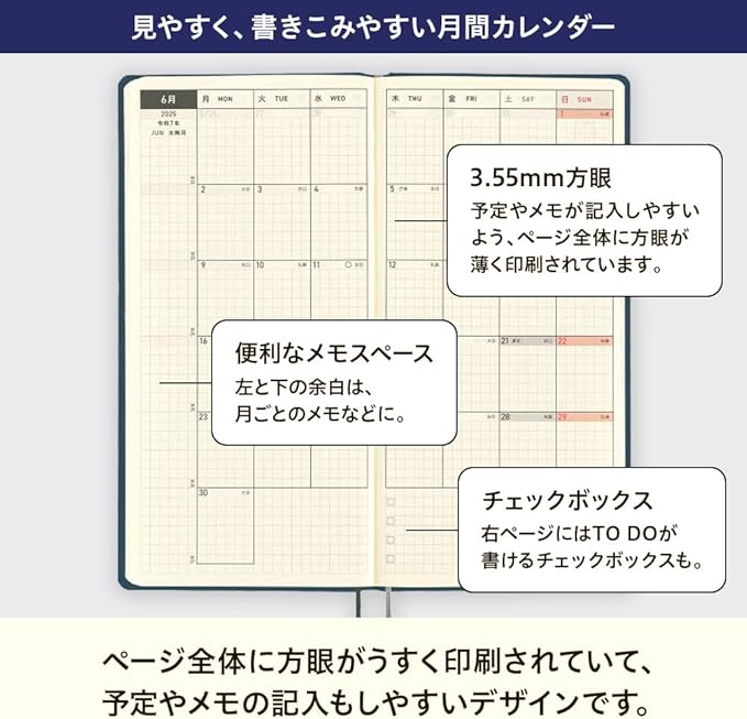Premium Tomoe River Paper: Featuring the renowned Tomoe River paper, this planner ensures smooth writing with minimal bleed-through, making it suitable for various types of pens and markers, offering a premium feel with every entry.