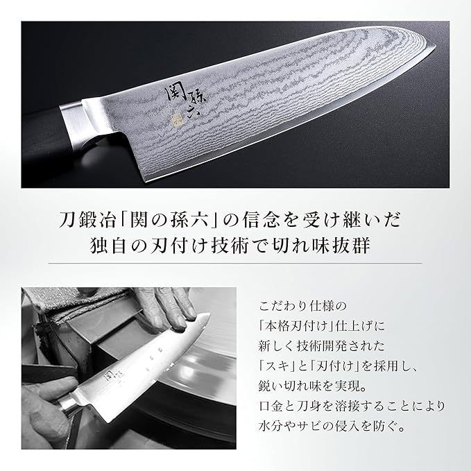 - The surface of the blade has a beautiful Damascus pattern that resembles a Japanese sword, and the handle is shaped with an inverted triangle that fits comfortably in your hand