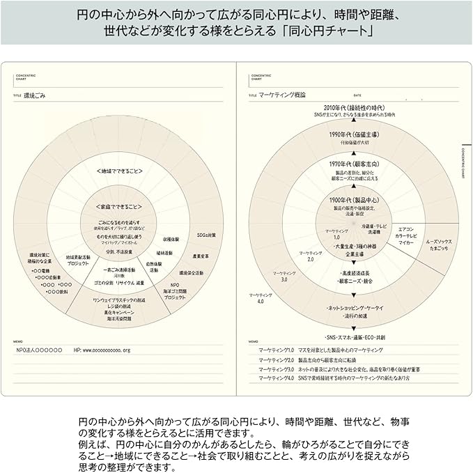 - Contents: 16 mandala charts, 16 coordinated memos, 16 pages of concentric charts, 16 pages of 4 note pages