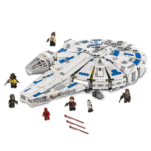 Kessel Run Millennium Falcon Design: This set features a unique version of the iconic Millennium Falcon, showcasing the ship as it appears during Han Solo's Kessel Run in Star Wars: Solo. It includes special modifications and details, such as the blue accents on the hull and a streamlined design, making it a distinct and exciting model.