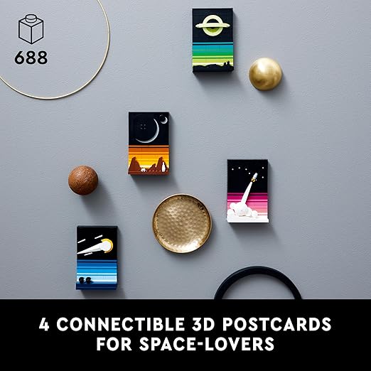 Stunning Conversation Piece: Once completed, the LEGO Tales of The Space Age set makes an eye-catching, space-themed display piece. Whether placed in a living room, office, or home studio, these 3D postcards are sure to spark conversation and admiration, making them a perfect decorative addition to any room for space aficionados.