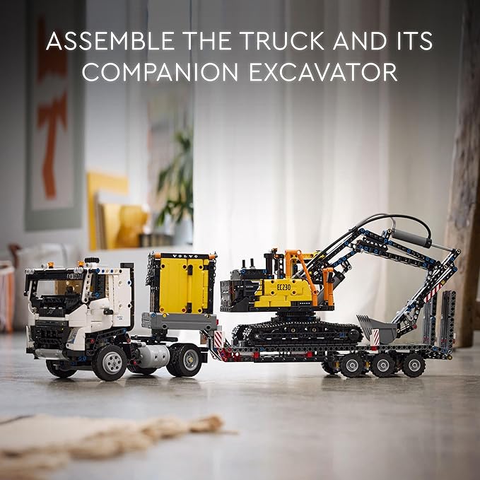 Realistic Volvo FMX Truck & EC230 Excavator: This LEGO Technic set allows builders to create detailed, working models of the Volvo FMX Truck and EC230 Electric Excavator, featuring lifelike designs that capture the engineering of these powerful construction machines.
