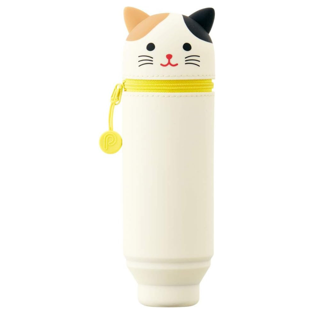 Lihit Lab PuniLabo Stand Pen Case (Pen Holder), 2. 4" x 7. 8", Creamy Cat - A-7712-7