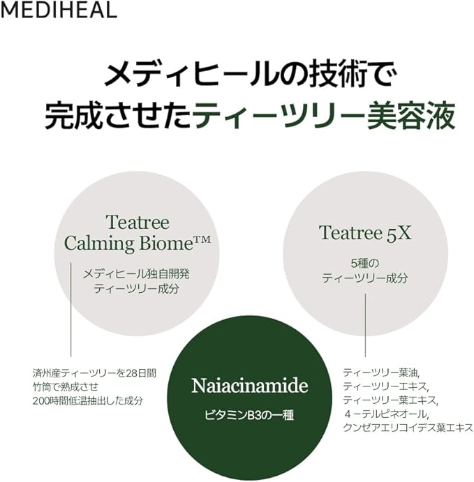 Purifying and Clarifying: The Mediheal Active Ample Serum (TEATREE) is infused with tea tree extract, known for its antibacterial properties, helping to cleanse and clarify the skin by targeting acne-causing bacteria.