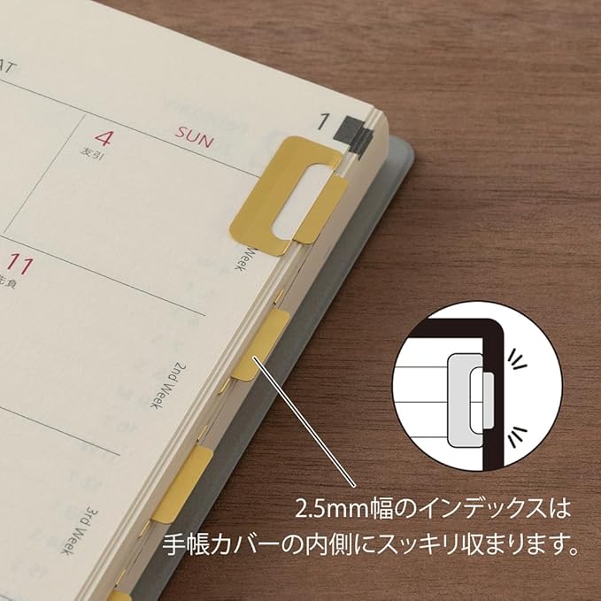 - 2.5mm wide index that does not protrude from the notebook cover