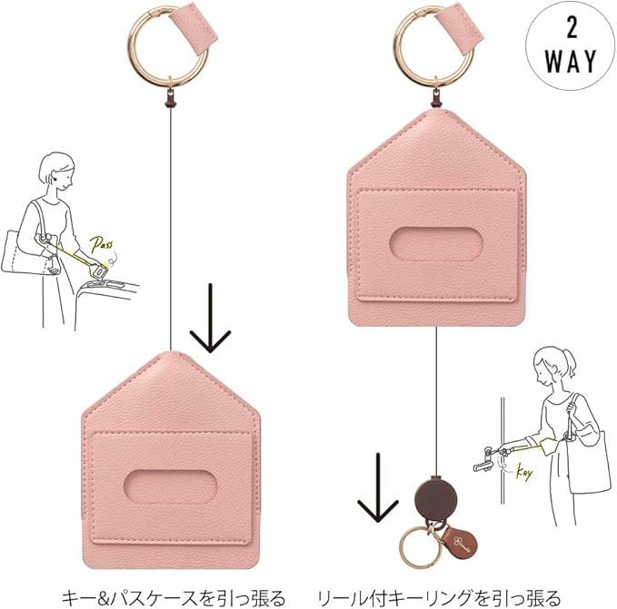 Midori 57459006 Pass Case, Key & Pass Case, 2-Way with Reel, Pink