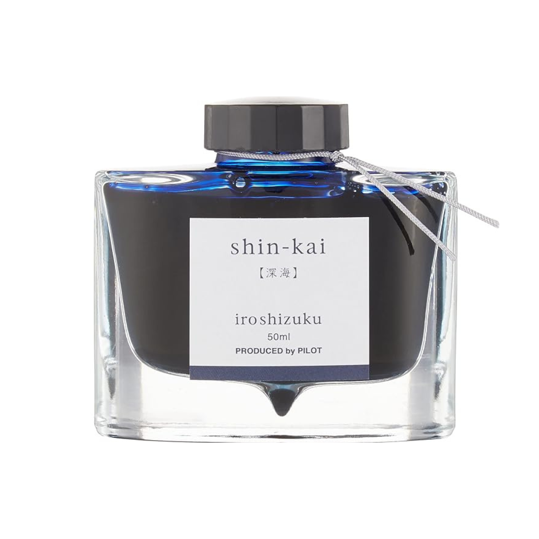 - Pilot Iroshizuku Shin-Kai – Premium blue-black fountain pen ink with a deep sea-inspired color.