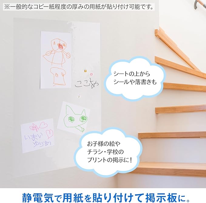 - 【Anywhere Sheet】Static cling to the wall and write with a magical sheet/board marker that can be used like a whiteboard
