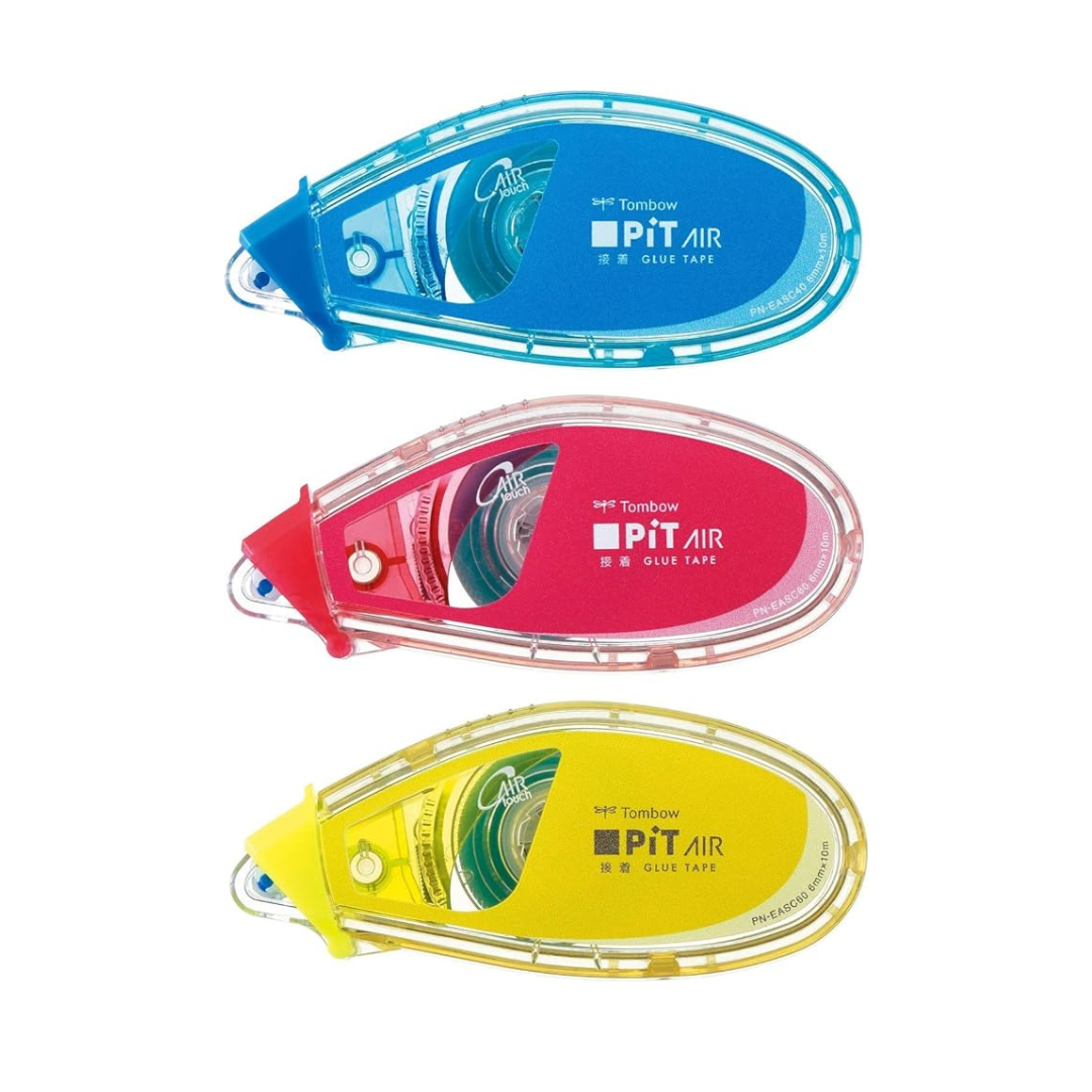 TOMBOW HCB-324X Pit Air Mini Pencil Tape Glue (Tape Width 0.2 Inches x 39.4 FT (6 mm x 10 m) Blue Pink Green Pack of 3