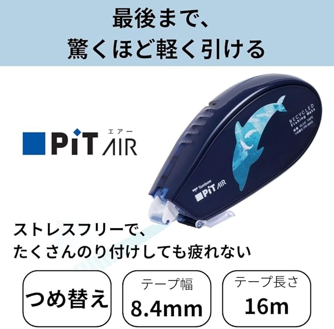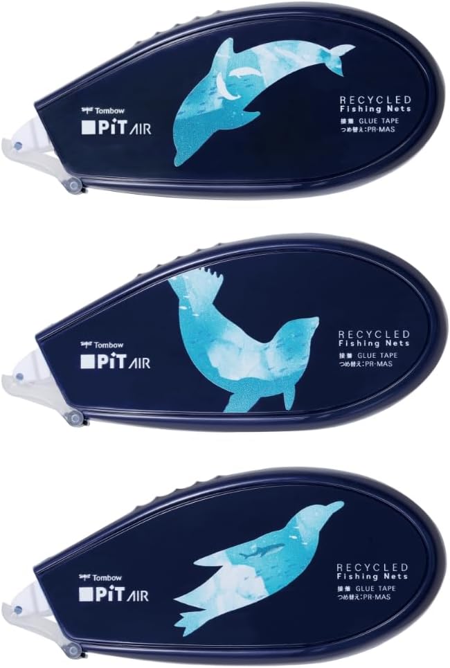 Tombow HHA-341ATU PiT Tape Glue PiT Air Body Strong Adhesive Fishing Net Recycling 3.3 inches (8.4 mm) Width x 59.4 ft (16 m) Set of 3 Types Dolphin Seal Penguin