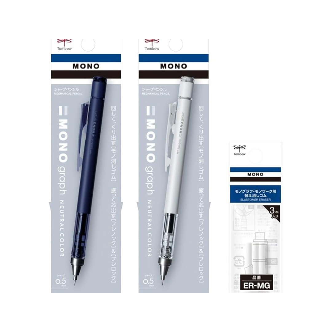 - Standard model of the monograph-monograph series mechanical pencil equipped with Tombow MONO eraser. This set of 2 simple and muted colors can be used for a variety of occasions, including students, adults, boys, and girls