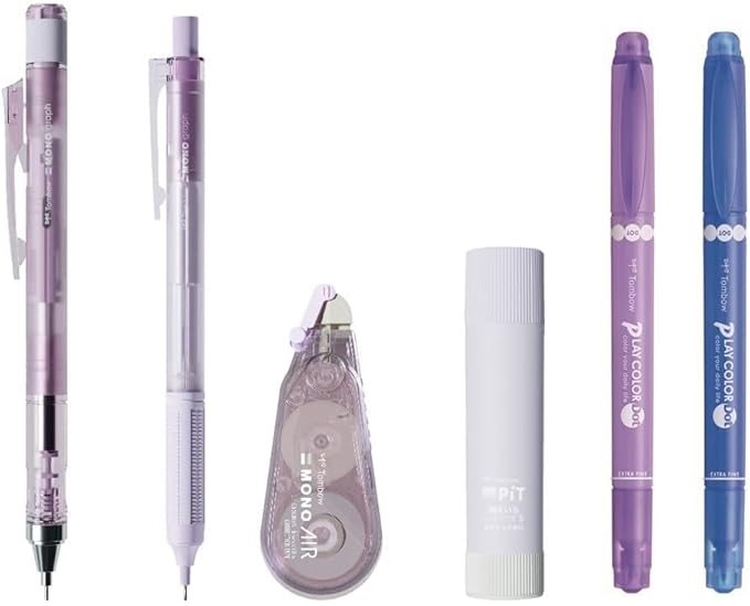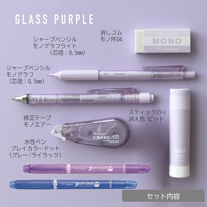 TOMBOW Pencil MONO x PiT Stationery Set, Pastel Glass, Purple, 7-Piece Set (Mechanical Pencil 0.5mm x 2, Eraser, Glue Stick, Correction Tape, Color Pen x 2) PCC-741EAZ