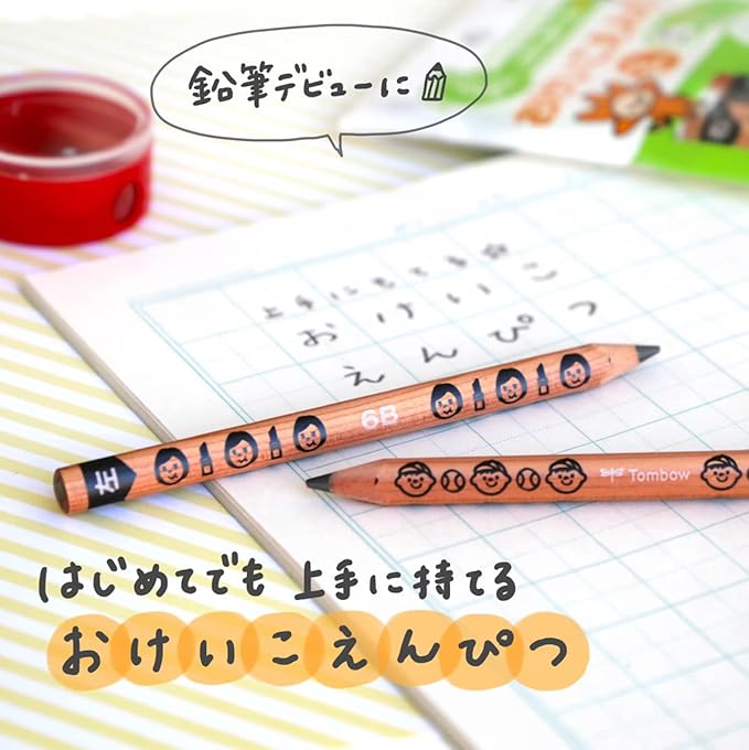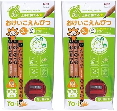 Tombow Pencils (First Triangle Pencils) for Toddlers (Thick Pencils for Easy Grip) with Finger Rest Marker Sharpener 6B Yo-i MY-PBE-6B (x2)