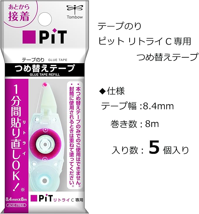 TOMBOW PiT Retry CN Glue Tape Cartridge (Refill for PN-CRN) 5 pcs PR-CRN-5P