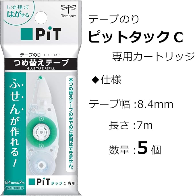 TOMBOW PR-CK-5P PR-CK-5P Tape Glue Cartridge for PiT Tack C Refill (PN-CK), 5 Pieces