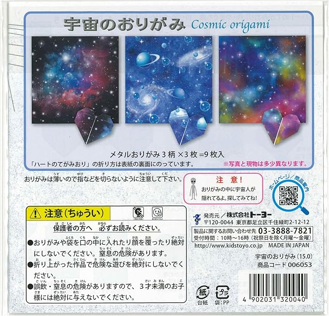 Toyo 006053 Origami Cosmic Origami, 5.9 x 5.9 inches (15 x 15 cm), 3 Metal Origami Patterns, 3 Sheets Each, 9 Sheets (With How to Fold the Mane of Heart)