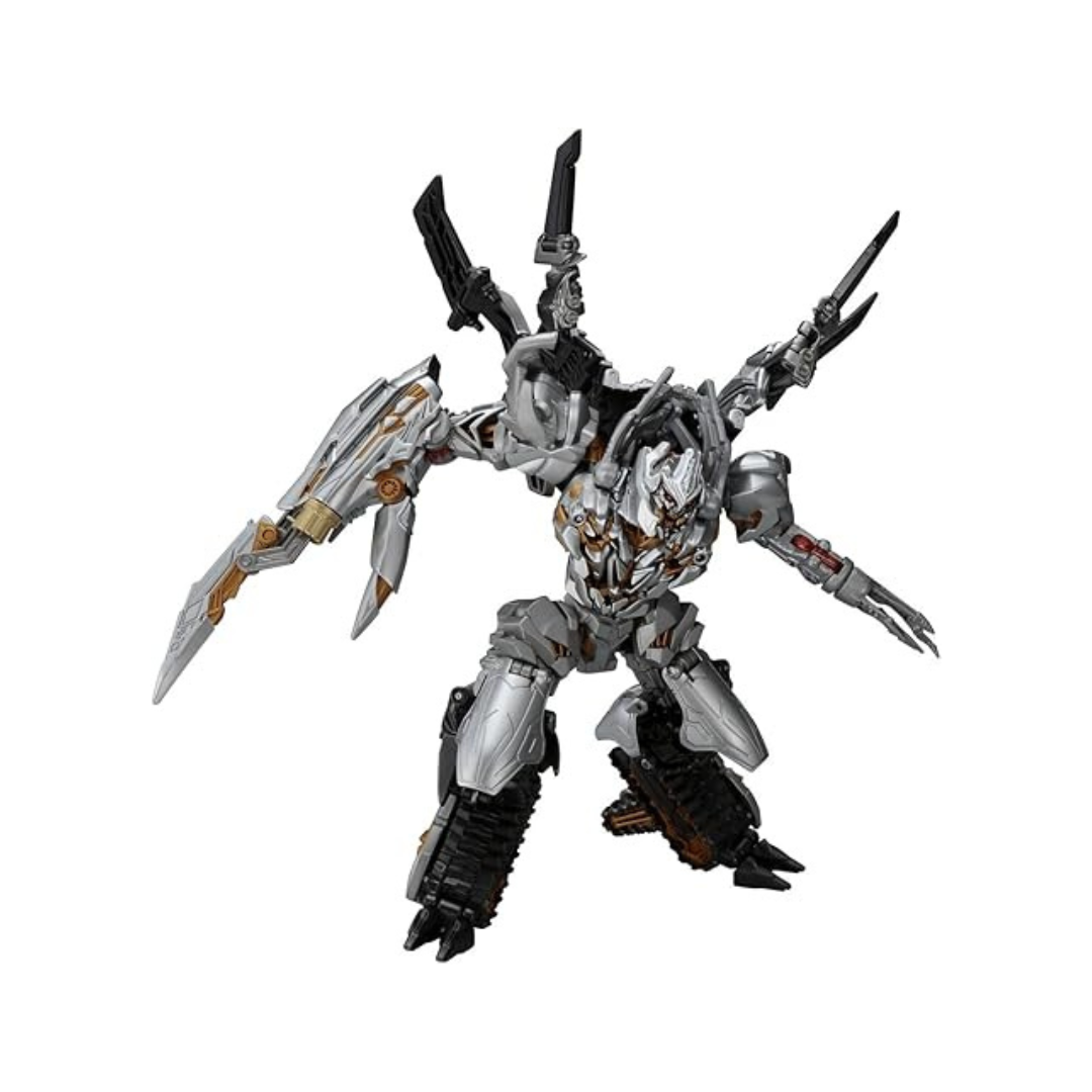 Dynamic Transformation: Megatron transforms from a sleek robot into a fully detailed and functional tank mode, with a smooth and impressive transformation process for collectors and fans.