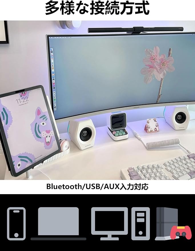 - 【FULL COLOR RGB LIGHTS】Our gaming speakers have beautiful RGB lights that can be switched between 12 colors freely. Looks more cool in the dark. Enjoy a more attractive game/music/movie atmosphere