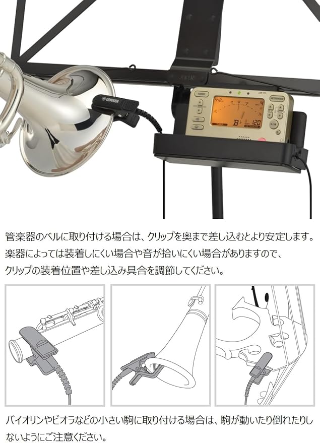 - Clip type microphone for easy on/off sending vibrations directly to the tuner by attaching the microphone to your instrument