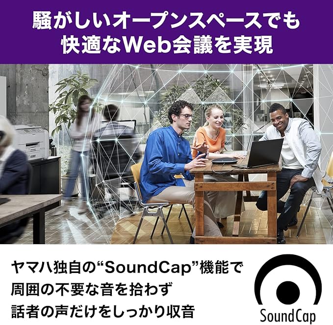 - Microphone: Unidirectional x 3, Sound Absorption: Standard: Recommended 1.5 m / Max 3 m / SoundCap: 1 m, Speaker: Full Range x 1, Volume: Up to 91 dB (0.5 m), Frequency Band: 100 Hz - 20,000 Hz, Playback: 190 Hz - 20,000 Hz, Signal Processing Adaptable Echo Canceller, Noise Reduction, Mic Auto Tracking, Auto Gain Control, Reveal Prevention, SoundCap