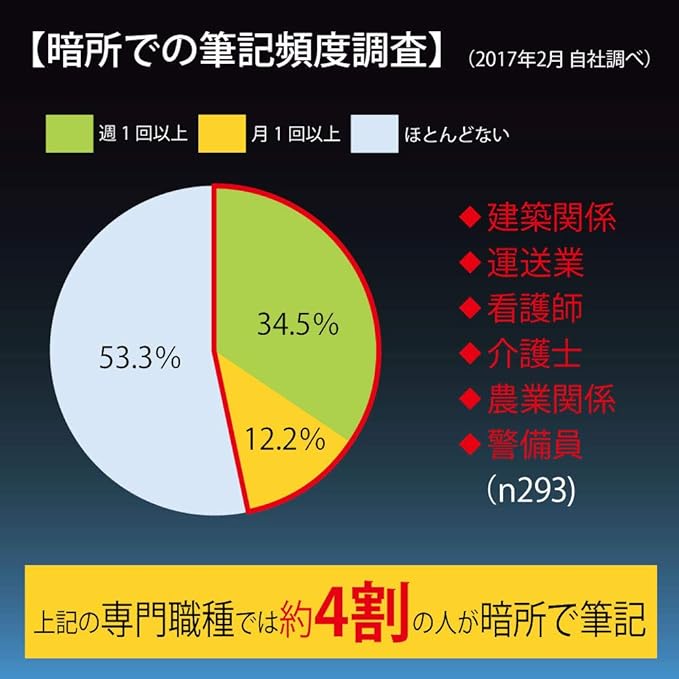 - [Uses] Writing in dark places, outdoors, and disaster preparedness supplies