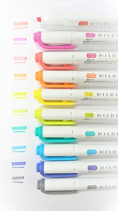 - (10 Colors) Mild Marigold, Mild Fuchsia, Mild Coral Pink, Mild Apricot, Mild Lemon Yellow, Mild Citrus Green, Mild Summer Green, Mild Cyan, Mild Lavender, Mild Dark Gray